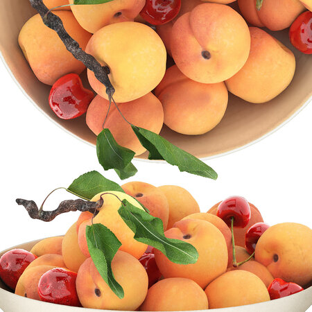 bowl of apricots and cherries 3D model
