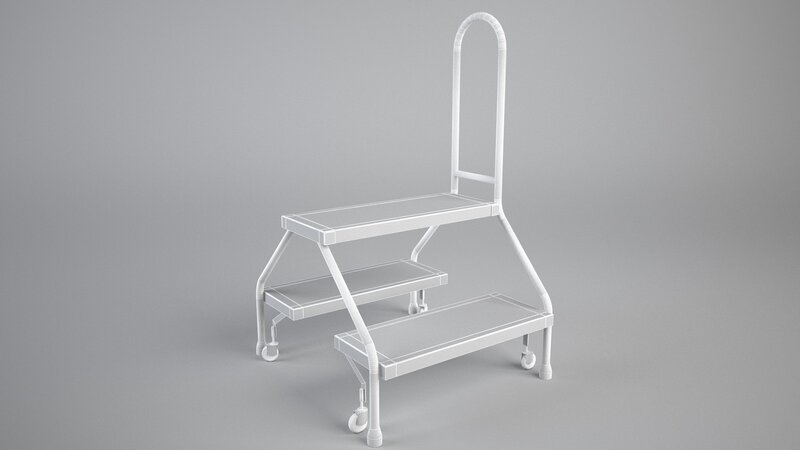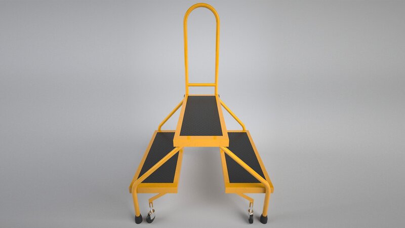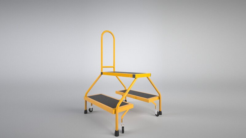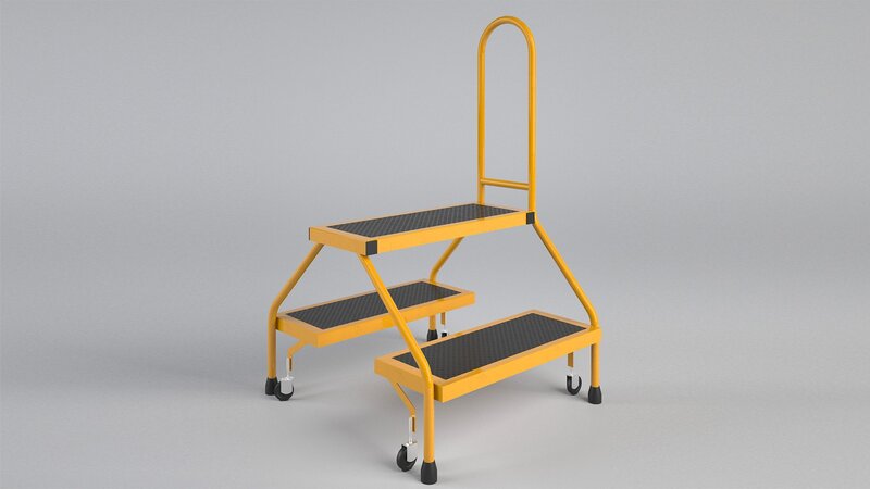 Metal body with rubber steps and wheels.