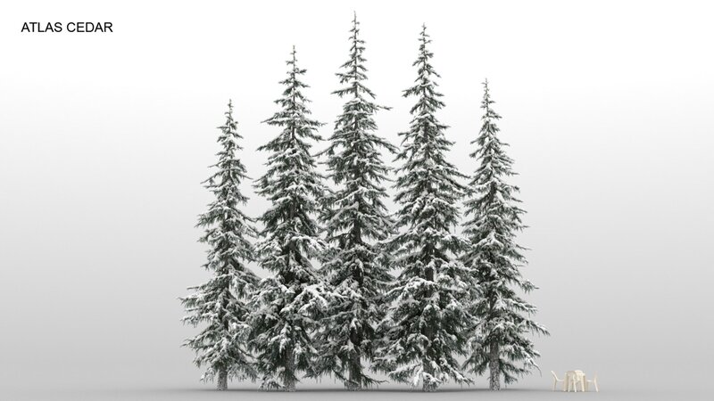 package contains 16 type of pine trees and every type has 5 sizes and variations. also every tree has snowy version. 80 summer and 80 winter pine tree models in total. winter trees are exactly the same summer trees with snow.