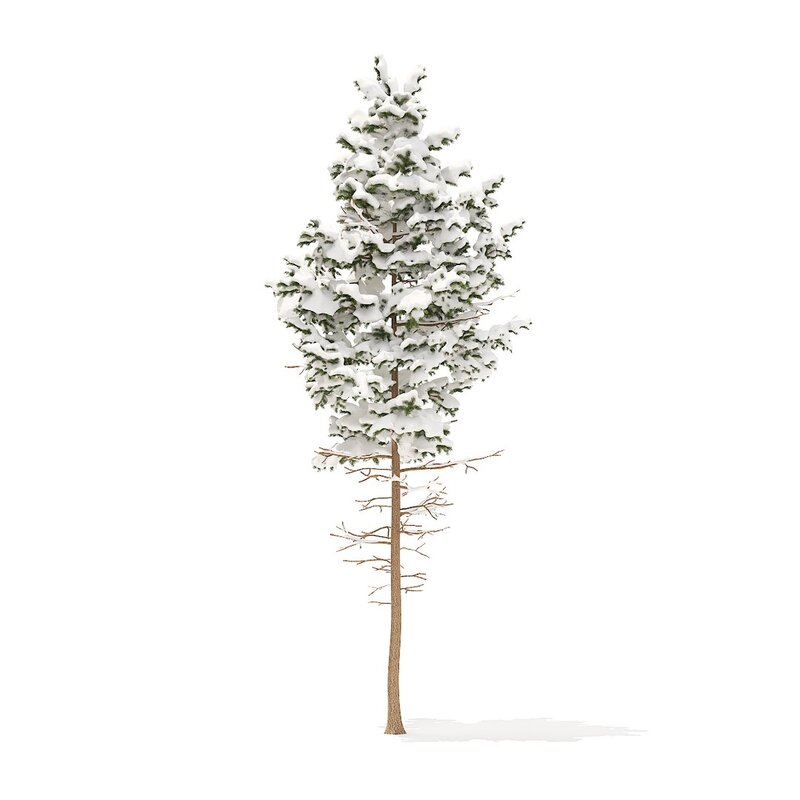 Pine tree with snow 3d model. Height: 7.7m. Compatible with 3ds max 2010 (V-Ray, Mental Ray, Corona) or higher, Cinema 4D R15 (V-Ray, Advanced Renderer), FBX, OBJ and VRMESH.