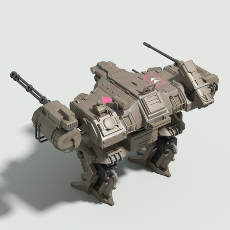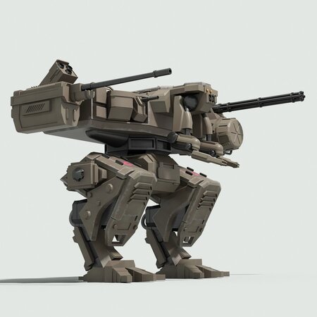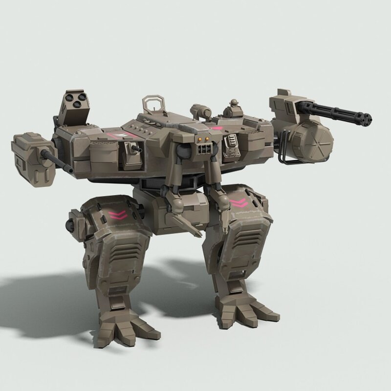 Detailed 3D model of a futuristic military fighter robot.